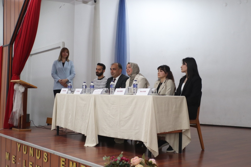 Çocuk Gelişimi Alanı tarafından düzenlenen "Kariyer Yolculuğum" paneli alan şefi Esra Çarpraz' ın moderatörlüğünde okulumuz salonunda gerçekleştirildi. Talha Ömer Teşik Özel Eğitim Okulu müdürü sayın Ömer Kaban, özel eğitim öğretmeni sayın Yunus Orhan, çocuk gelişimi öğretmeni sqyın Aysun Nayır, ilçe Sağlık Müdürlüğü Çocuk Gelişimi Uzmanı sayın Merve Kaşkaş ve okulumuz mezunu okul öncesi öğretmeni Hatice Ergün'ün katılımlarıyla gerçekleşen panel öğrencilerimize mesleki anlamda farklı bakış açıları verdi. Tüm misafirlerimize bize zaman ayırdıkları için teşekkür ediyoruz. Ayrıca paneli düzenleyen alan ve atölye şeflerimizi öğrencilerimize bu ortamı sağladıkları içi tebrik ediyoruz.